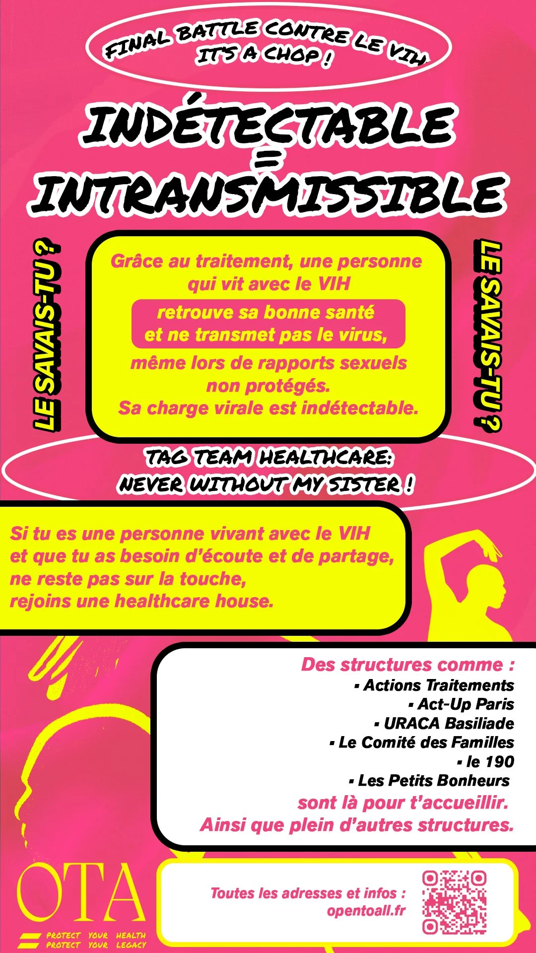 Parce que les personnes séropositives souffrent encore trop souvent de discriminations et de préjugés. Avec une charge virale indétectable, elles retrouvent leurs défenses immunitaires, vivent en bonne santé et ont une espérance de vie comparable à celle d’une personne séronégative. Elles ne transmettent pas le virus à leurs partenaires sexuels. Elles peuvent avoir des enfants séronégatifs.